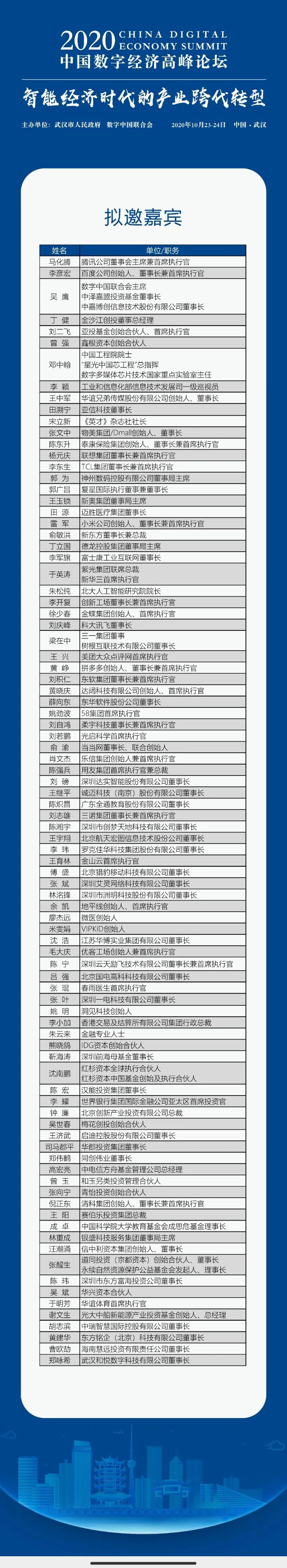 由武汉市人民政府和数字中国联合会联合主办的2020中国数字经济高峰论坛即将于2020年10月23-24日在武汉光谷希尔顿酒店隆重举行。论坛以“智能经济时代的产业跨代转型”为主题,邀请政府人员、专家学者、行业领袖、企业家等重磅嘉宾,围绕数字产业化、产业数字化和数字化治理,开展丰富交流活动,打造具备国际影响力的高端、开放交流合作平台,帮助湖北省和武汉市对接国际国内合作资源,培育壮大数字经济产业,进而提升业界影响,创造新机遇,带动产业发展新突破。